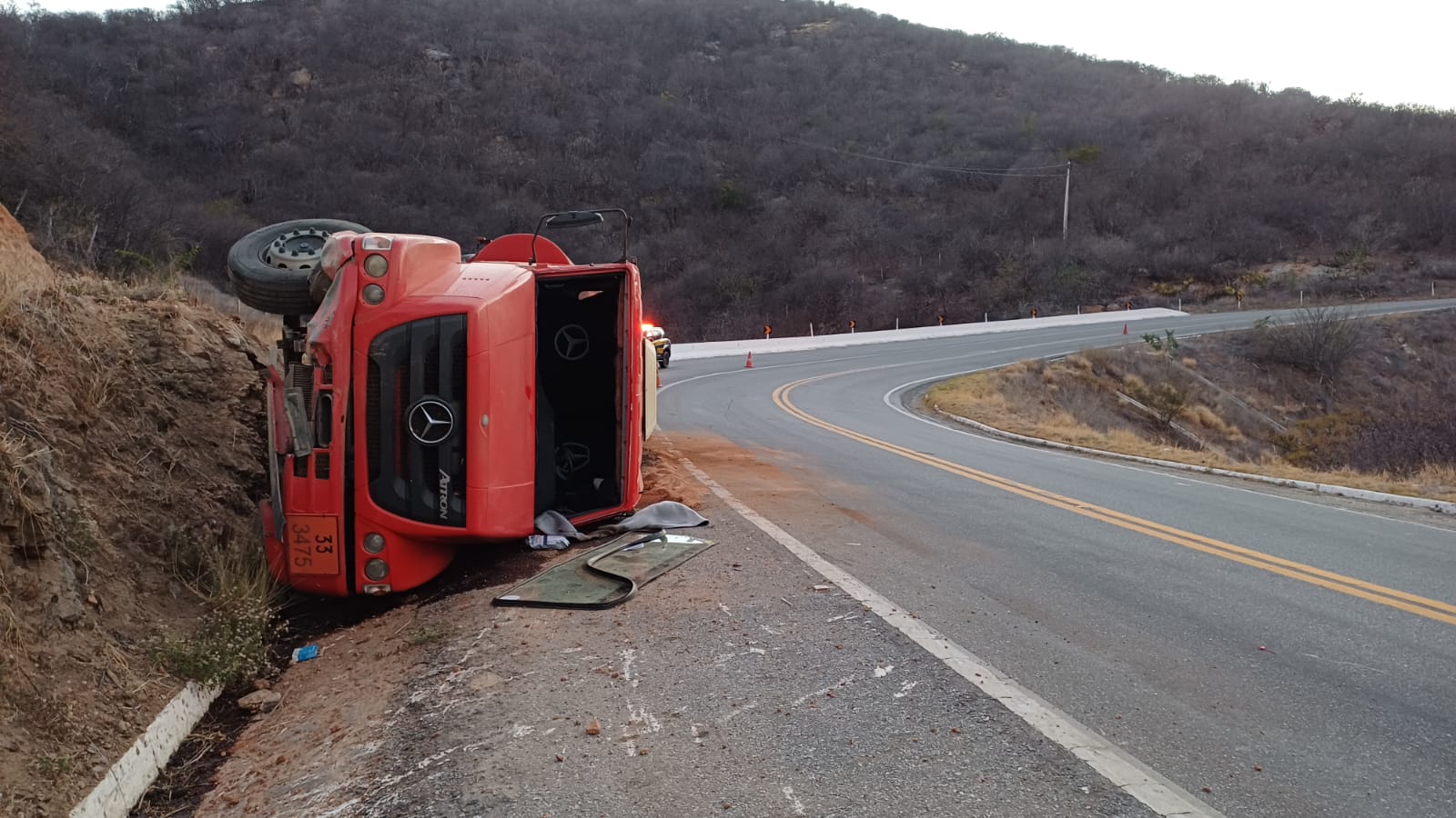 Na madrugada desta quinta-feira (23), por volta das 2h40, a Polícia Rodoviária Federal atendeu a um sinistro de trânsito do tipo tombamento, ocorrido no km 278 da BR-230, na Serra de Santa Luzia (PB). O veículo envolvido, um caminhão Mercedes-Benz Atron 2324, transportava cerca de 15 mil litros de combustível e seguia com destino ao município de São Bentinho, no Sertão paraibano.